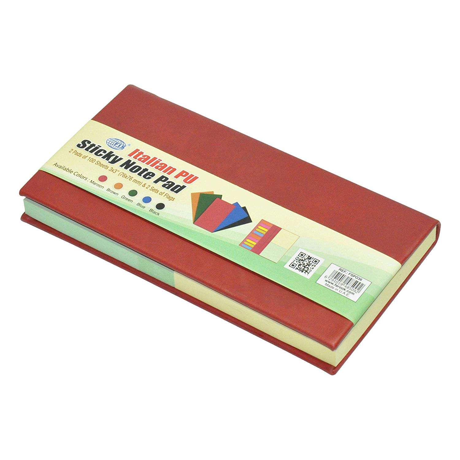 2-Piece Sticky Notes Set + 2-Piece Flags Set Italian PU (2 Colors x 100 Sheets) 3 x 3 Inch Size