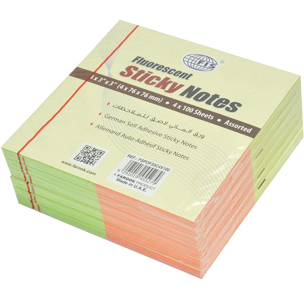 400-Sheets Sticky Notes Set, 4 Assorted Fluorescent Colors, 3 x 3 Inch Size